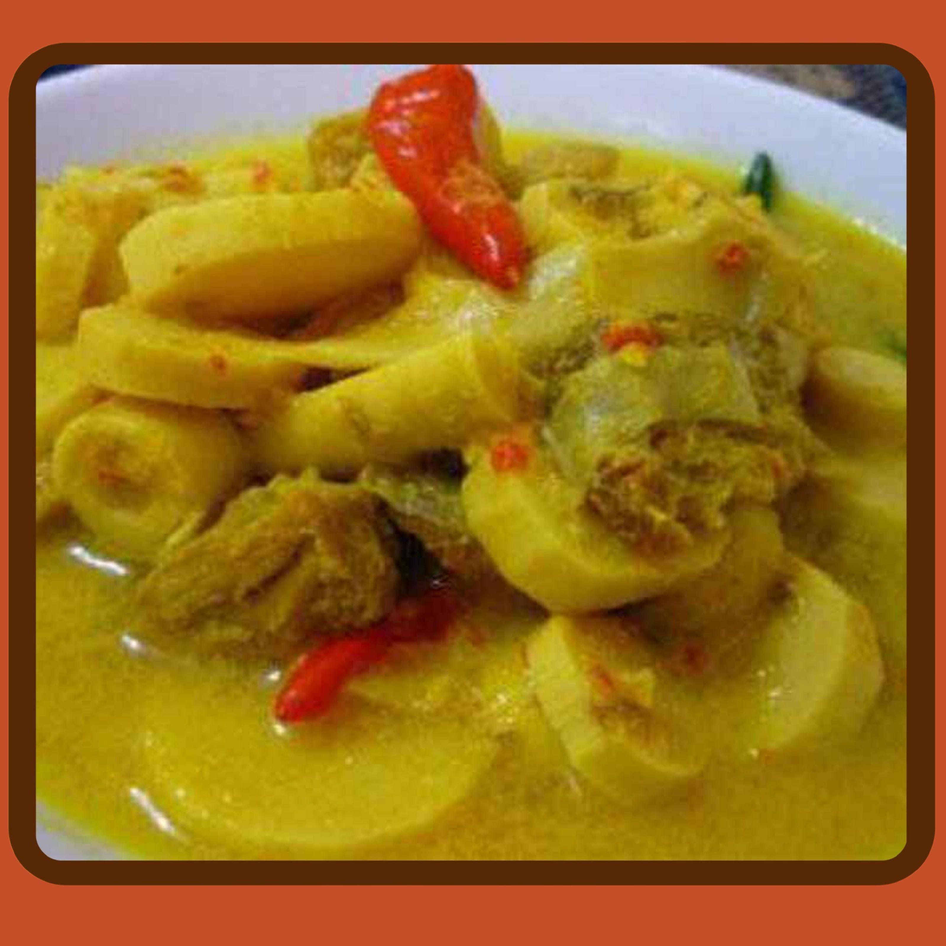 Bamboo Shoot Gulai (Gulai Rebung) is a traditional Padang dish made from bamboo shoots cooked in coconut milk and characteristic spices. Bamboo shoots have a unique crunchy texture and absorb flavors perfectly, creating a savory, delicious, and richly flavored dish.